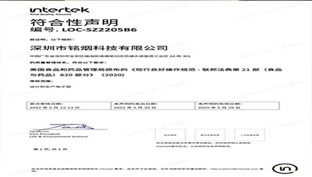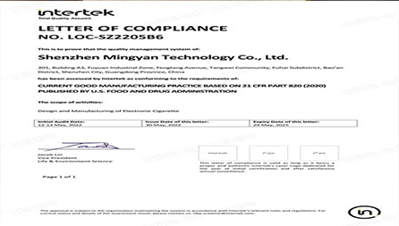 祝賀深圳市銘煙科技有限公司2022年順利通過電子霧化GMP 820認證