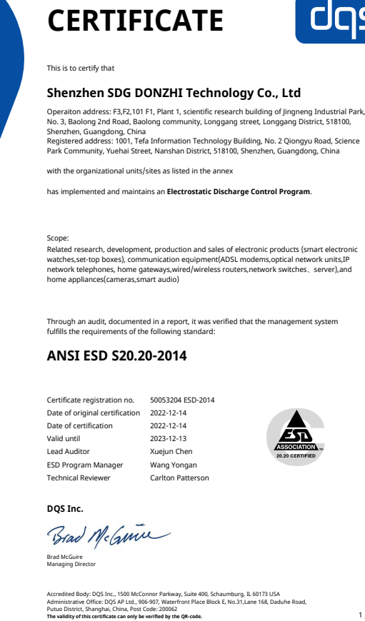 祝賀深圳特發東智科技有限公司2022年順利通過ESD認證