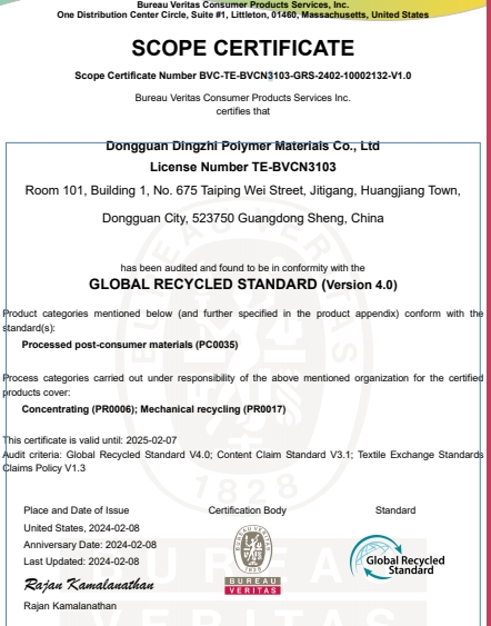 熱烈祝賀東莞鼎智高分子材料有限公司2024年通過GRS認證