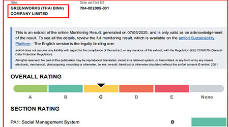 祝賀越南工廠GREENWORKS (THAI BINH) COMPANY LIMITED格力博 2025年順利通過(guò)BSCI驗(yàn)廠祝賀越南工廠GREENWORKS (THAI BINH) COMPANY LIMITED格力博 2025年順利通過(guò)BSCI驗(yàn)廠