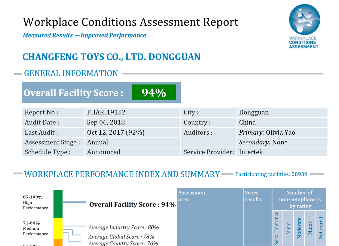 本文來(lái)源:驗(yàn)廠之家 - 祝賀東莞市長(zhǎng)豐玩具有限公司順利通過(guò)WCA驗(yàn)廠,并取得94分的成績(jī)
