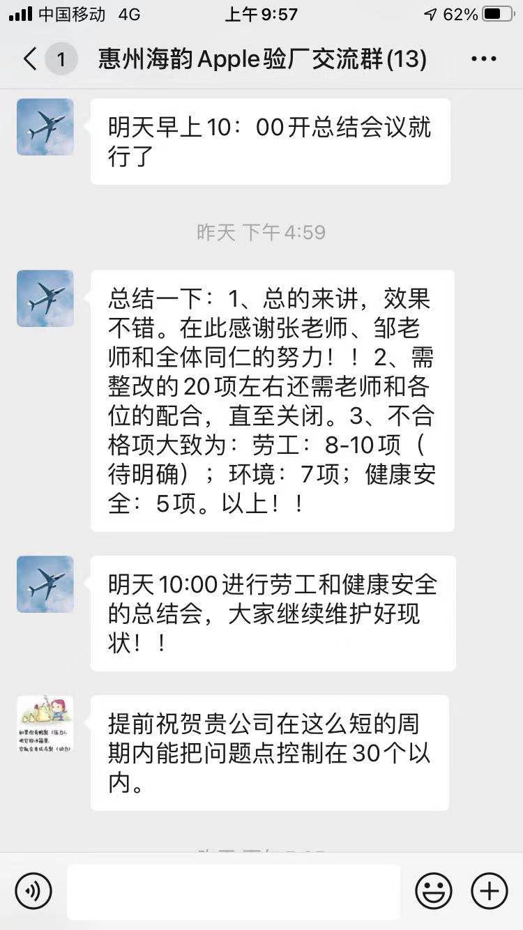 本文來源:驗廠之家 - 祝賀惠州市海韻電子有限公司一次性通過Apple蘋果驗廠