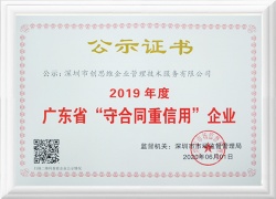 3273次 2020-09-16 作者:驗廠之家2019年榮獲”廣東省守合同重信用企業(yè)“榮譽證書