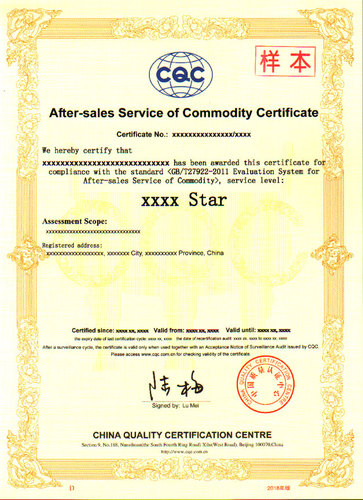 本文來源:驗廠之家 - 售后服務認證證書GB-T27922