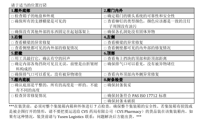 CVS反恐驗廠標準-集裝箱檢查點及注意事項如下: