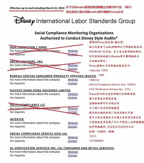迪士尼LS最近在LS網站發布了五家可接受的社會責任監督機構的更新名單,這些機構是被授權根據迪士尼的審核標準進行LS審核,2023年4月1日起生效。